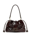 Description : Equipped with drawstring opening and closing, equipped with front flip cover and magnetic buckle, gold-faced metal accessories, equipped with handle, and can be carried on shoulder.