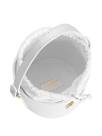 Description : Decorated with a logo, top handle, drawstring opening and closing, and chain shoulder straps.